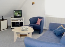 Wohnzimmer mit Essplatz, SAT-TV mit Minianlage und DVD-Player