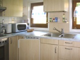 Voll ausgestattete Küche mit Elektroherd, Spülmaschine